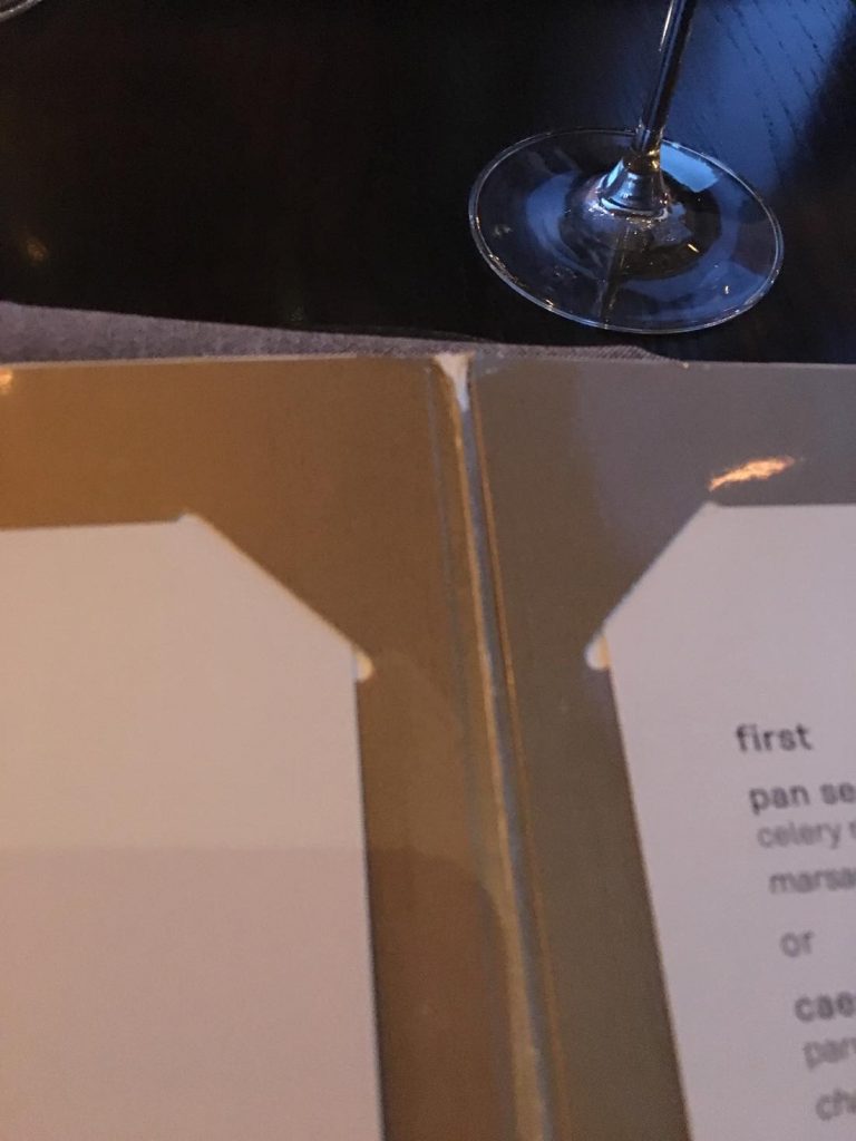 The most puzzling part of the entire evening is trivial, but I just can’t imagine this is how GR rolls – The menus were made of flimsy and torn paper-stock!?! I included some pictures showing how the coloring had worn away and edges ripped. Bizarre and not at all in line with the rest of the experience that I know everyone works so hard to achieve, so I’d love to know the reasoning/methodology behind this for my own knowledge.