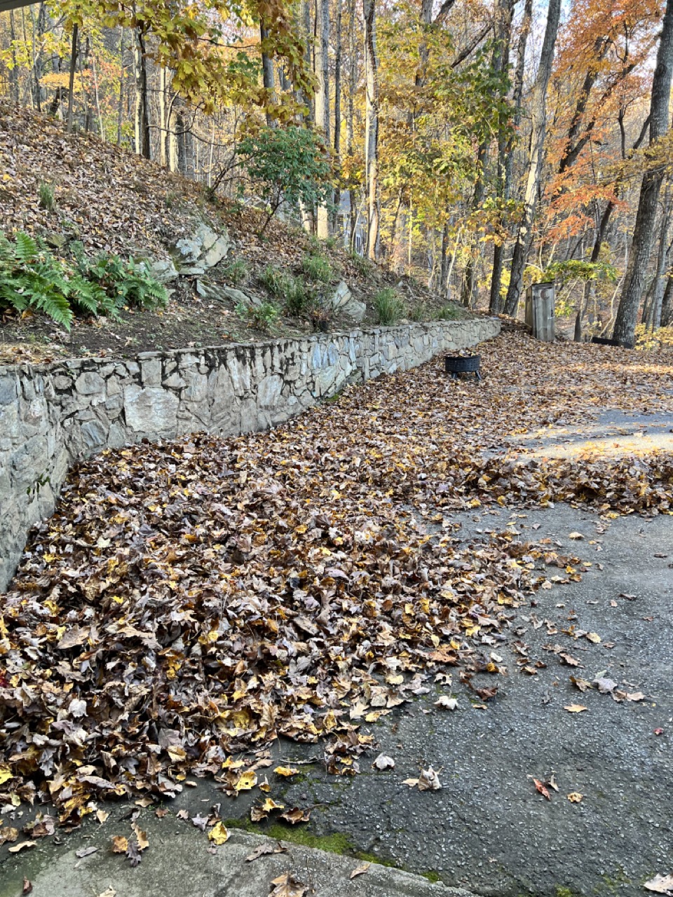 The beauty of the Western Carolina Mountains in the fall cannot be overstated, I dare you to try! Our annual display of fall foliage is spectacular and instills an inner peace that is better felt than described. However…as the saying goes, “What goes up, must come down…” and by George, those leaves fall with regularity for months after the peacocking has concluded. I have a theory that we get more accumulated leaf fall each year than snow in Chicago – still, I’m very happy to have made that trade!