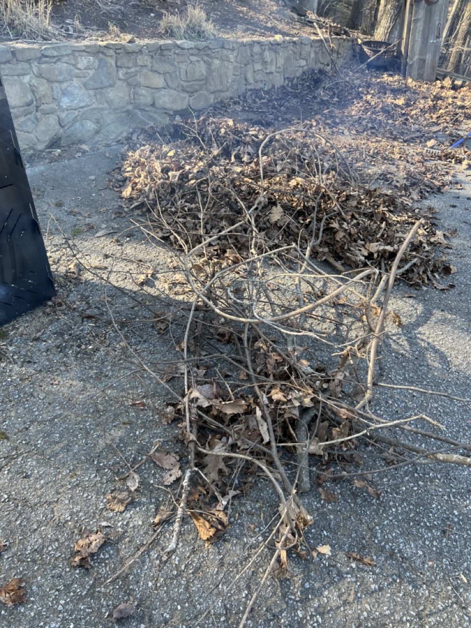I burned a giant pile of leaves collected over the winter along with several small trees, old fence posts, and countless cardboard boxes that have been collecting in the garage over the winter.