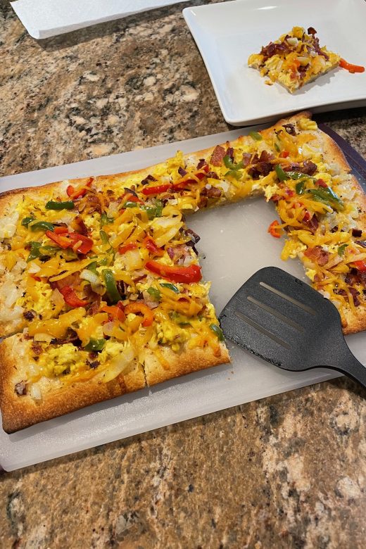 Asheville Breakfast ‘za !Ingredients1 13.8oz package Pilsbury Pizza Crust4 EggsScrambled1 OnionDiced4 Garlic clovesChopped1 …