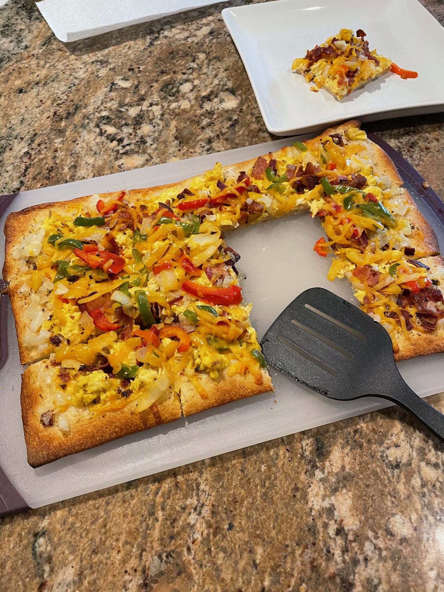 Add crumbled bacon (or your protein choice) on top of the eggs