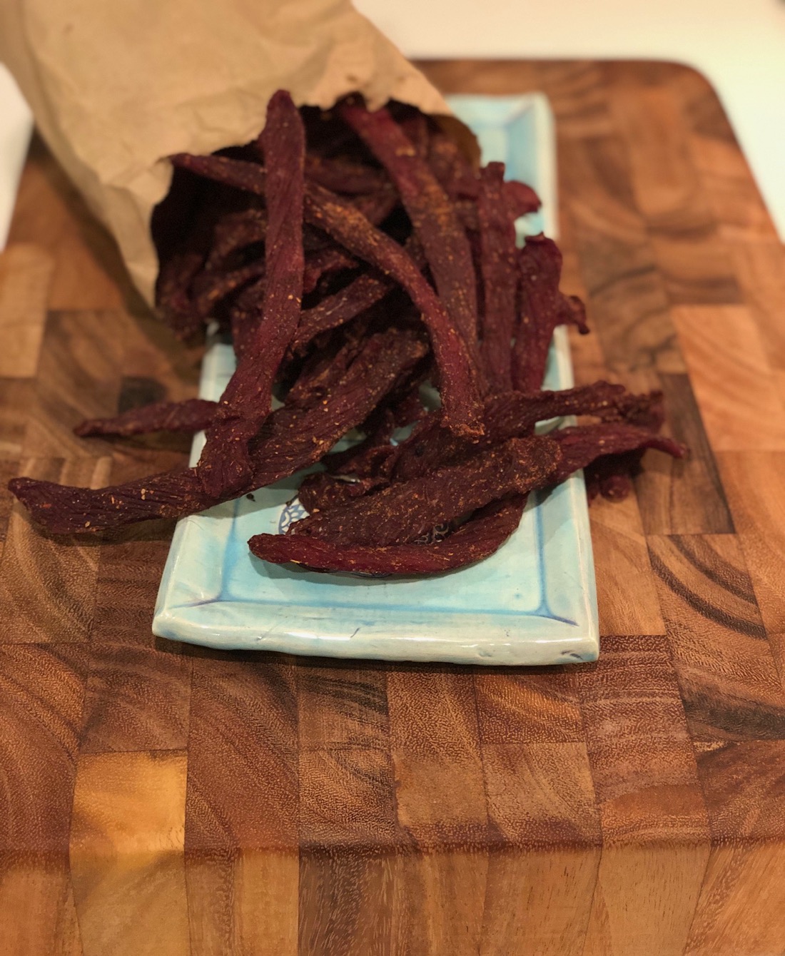 As I've been so intently researching and testing different jerky recipes, I've developed my own unique recipe that I'm sure will continue to evolve over time. In its current iteration, this blend mixes smokey, tangy, and classic flavors in one bite. Consider it my Amuse Bouche of jerky!