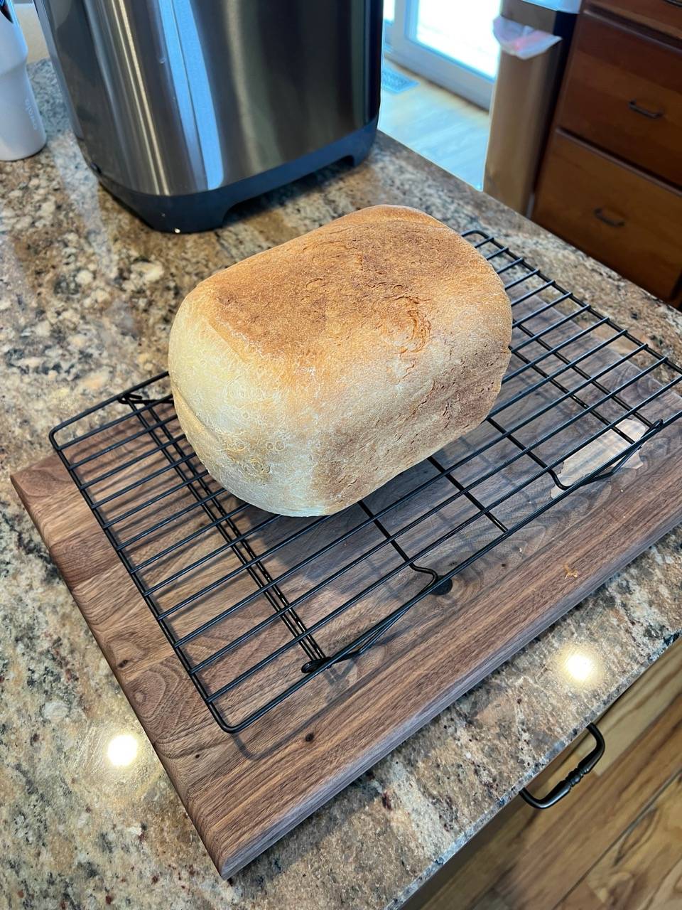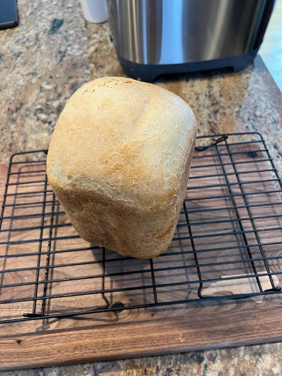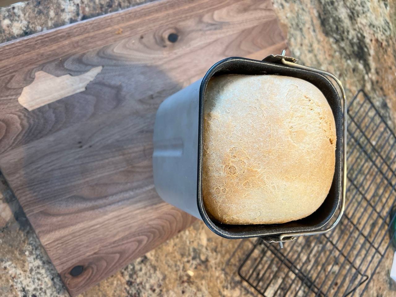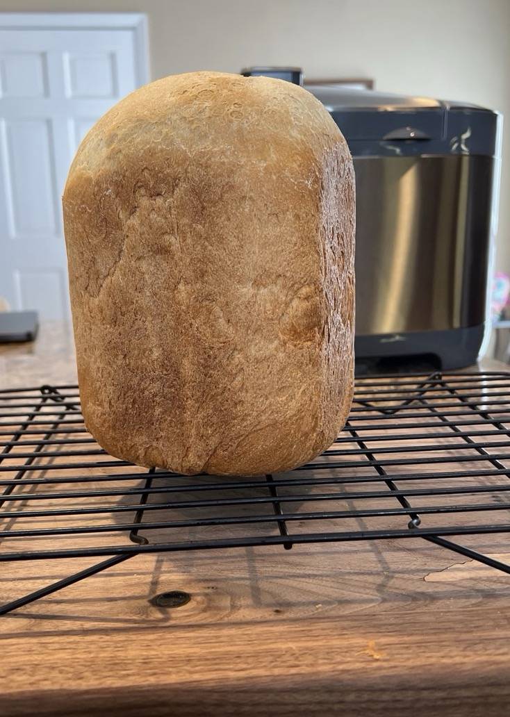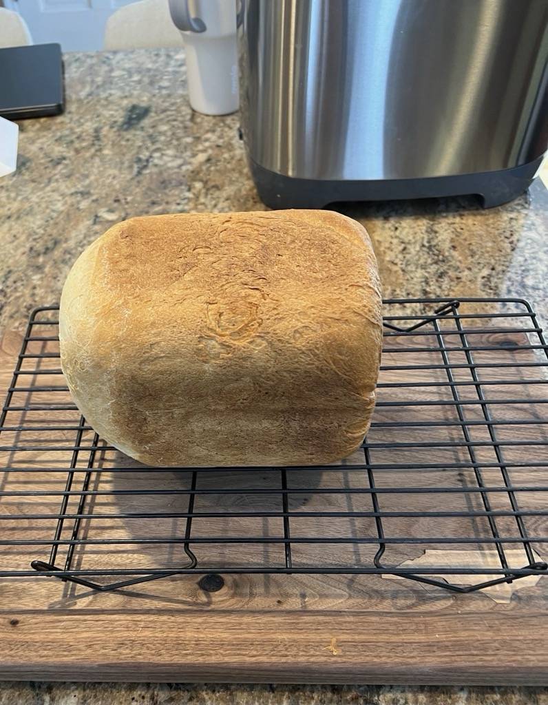 Remove from bread maker 15 minutes following the end of the bread making cycle/process and allow to cool on a wire rack