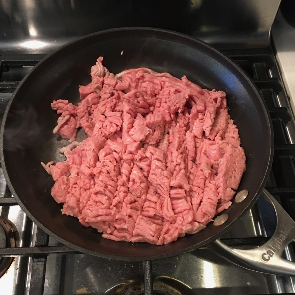 Add 1 cup of fresh water and 1 lb. cooked ground turkey to a Vitamix or other blender and blend until all chunks are gone