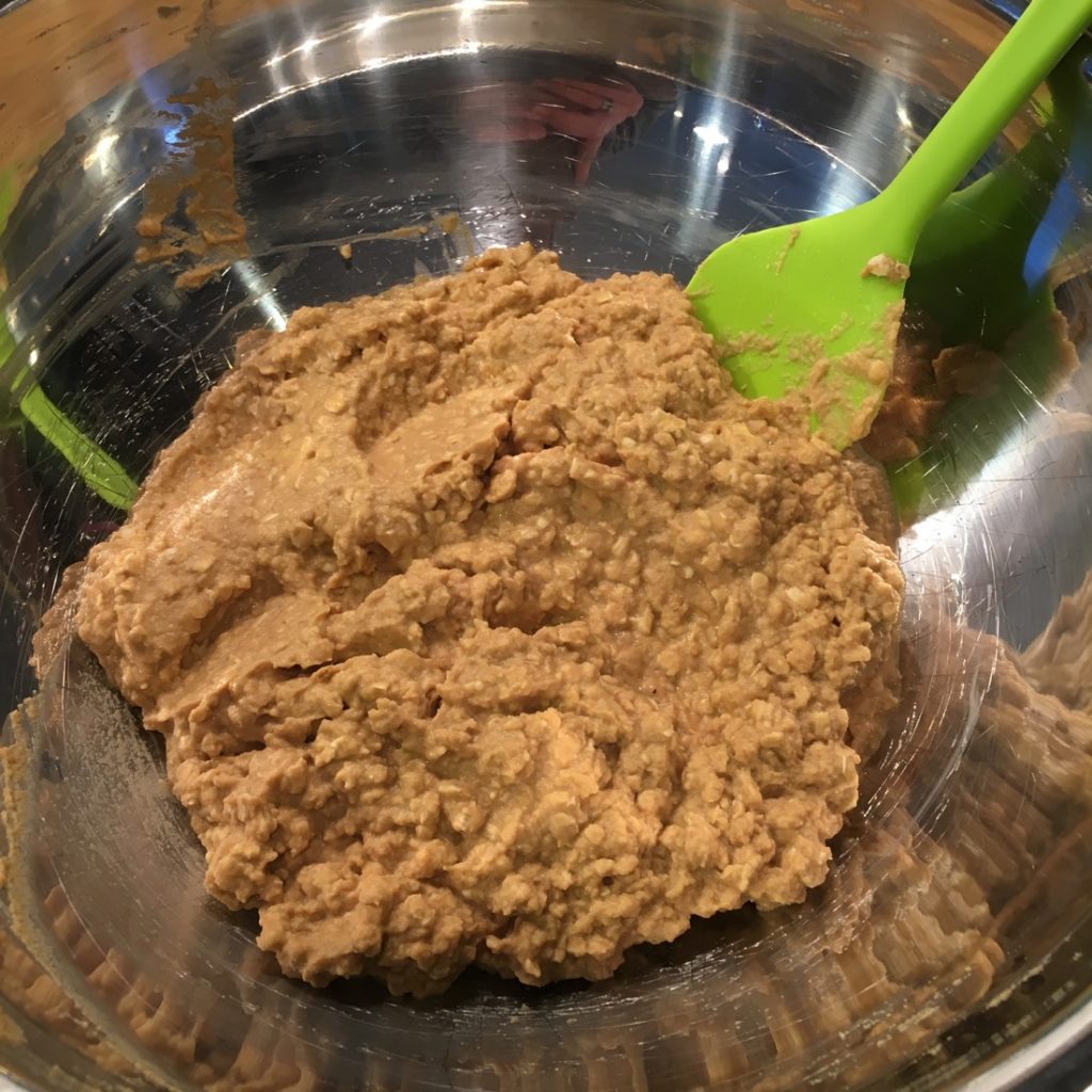 Transfer puree into a bowl and combine with 1.5 cups of dry oatmeal. The mixture should not be overly wet or runny. Add more oatmeal to get close to a dough-like consistency